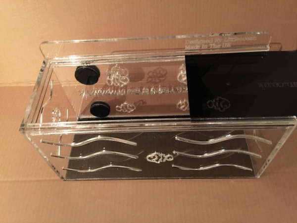 Visiually Acclimate you new livestock using this vented box, featuring blackout base and top to make your new arrivals feel secure but still exposing them to their new tank mates slowly.