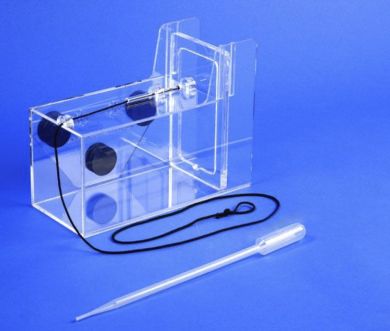 Exclusive to Little Ocean, Large Clear Acrylic Fish trap with Magnetic Mounting. The magnetic moutning allows you to position the trap at any height making it easier to catch your fish by placing it at the normal swimming height for the species involved.