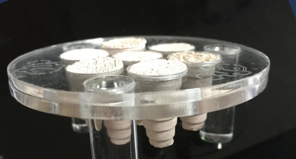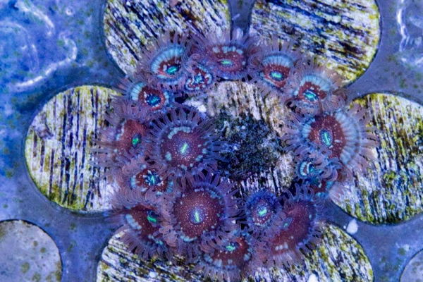 Quality rack for growing out or displaying Zoa frags,  would also work well with encrusting sps or other matting soft corals.  Close plug arrangement allows the coral to grow to neighbouring plugs allowing you to cut out the new frag and replace with a clear frag plug.  Couldn't be simpler!  flat surface holding frag plugs flush to the disc.
